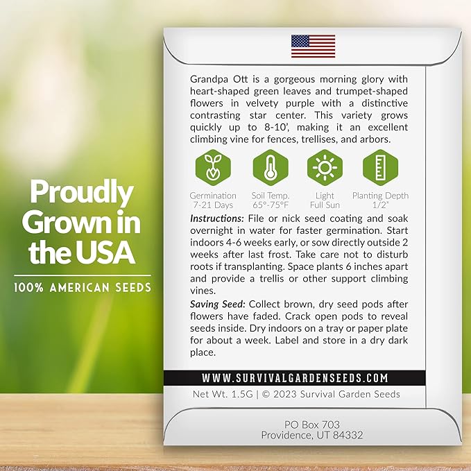 - Small American Family-Owned Business - We’re committed to providing fresh, high-quality morning glory seeds for planting now or storing for future seasons. Our non-GMO heirloom flower seeds are open-pollinated, untreated, and tested for best germination rates. They remain viable for years in a cool, dry location.