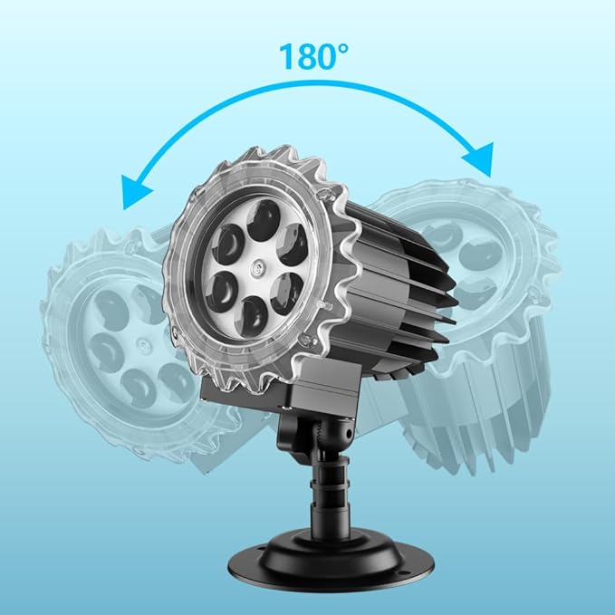 - Various installation methods - This Christmas snowflake light comes with a ground stake and a round stand base, you can place the outdoor projector light on a flat surface, or mount it on a wall and use the ground stake to stick to the ground outdoors. With 180° adjustable projection head, you can always aim the projection head at the area you want to decorate
