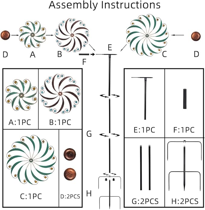 - Gorgeous Garden Decor: The gaint yard art wind spinners great for patio, lawn, pathway, walkway or garden. Lage metal wind suclpture can be easily seen and admired by passers-by and neighbors