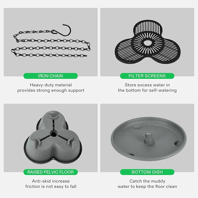 - Different Combinations: You can stack 2 or 3 or 4 tier; This planter can be hang with chains or used on a cylindrical rod
