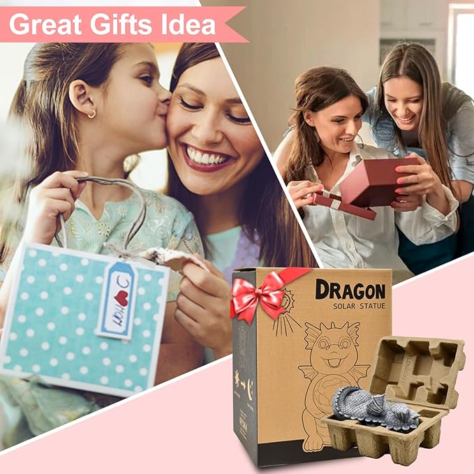 Garden Decor Solar Statues for Mom Grandma Birthdays for Women Sister Wife Lady - Front Patio Balcony Yard Art Lawn Ornaments Porch Outdoor Outside Decorations (Dragon)