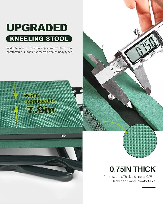 - 【The Garden Bench for Kneeling and Sitting You Need!】: Through feedback from more gardening enthusiasts, we know what kind of garden bench is the most suitable, so this kneeling stool was born. Tested in different scenarios, it is the most ergonomically designed, whether the width of stool surface or the thickness of EVA, this stool can better protect the knees of garden lovers, especially suitable for the elderly or those who need heavy duty kneeling bench crowd, because they need a more firm and comfortable gardening kneeling stool.