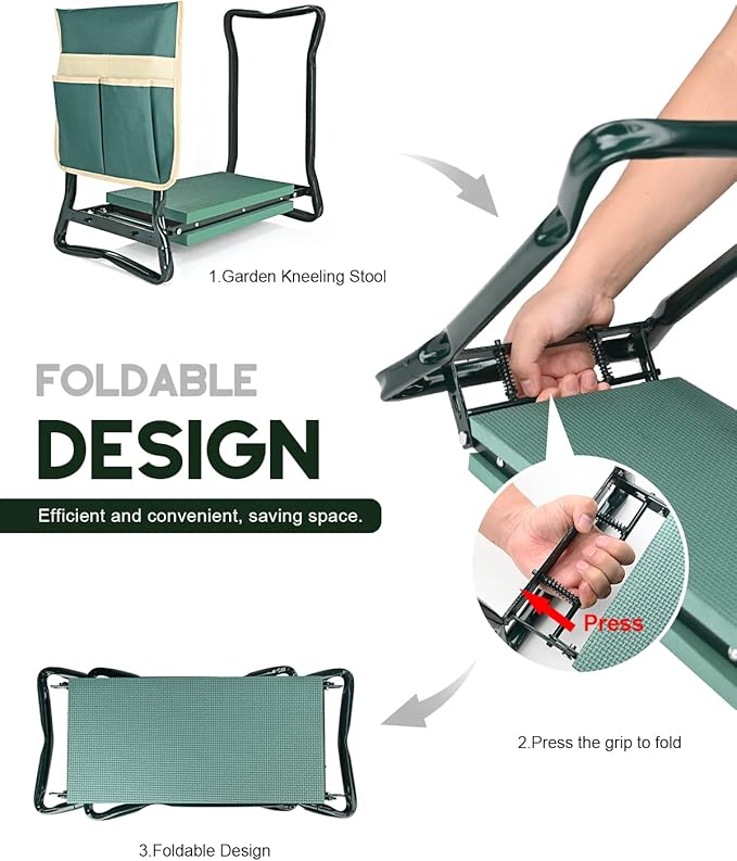 - 【Light & Durable】This Garden Kneeler and Seat folds up easily and Compactly,Easy to carry and storage, the seat can hold up to 330lbs.