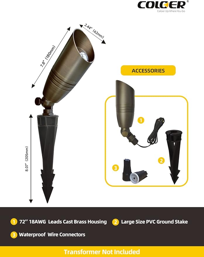 - Lifetime Warranty: The COLOER landscape spotlight uses a design with separate light fixture and bulb, which offers a longer lifespan compared to the non-detachable integrated design. You can replace the bulb without having to replace the entire fixture just because the bulb is broken. We offer a lifetime warranty on the brass light fixture. We stand behind our product with our top-rated customer service. Please don't hesitate to contact us if you have any issues.