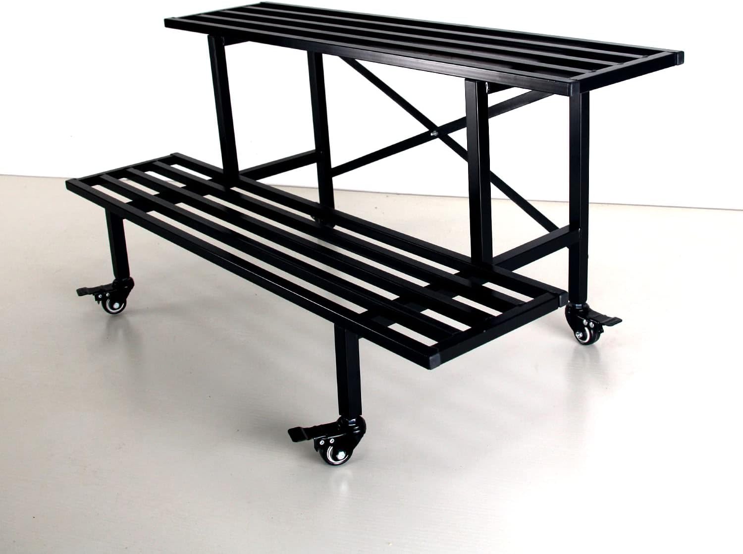 Zhongma 2 Tier Sturdy Metal Plant Stand with Wheels Heavy Duty Plant Holder for Home Indoor and Outdoor,L45.67 x W17.5 x H16.14 inch,440 LBS Capacity & Heavy Duty Construction
