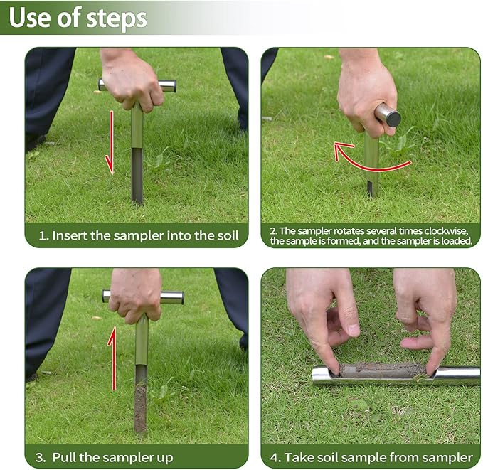 - HOW TO USE THE SOIL PROBE ROD: The core sampler tool adopts concise design, convenient to carry and easy to use. Insert the soil and rotate to form the sample, then pull out vertically, at last remove the soil upward and take it out gently