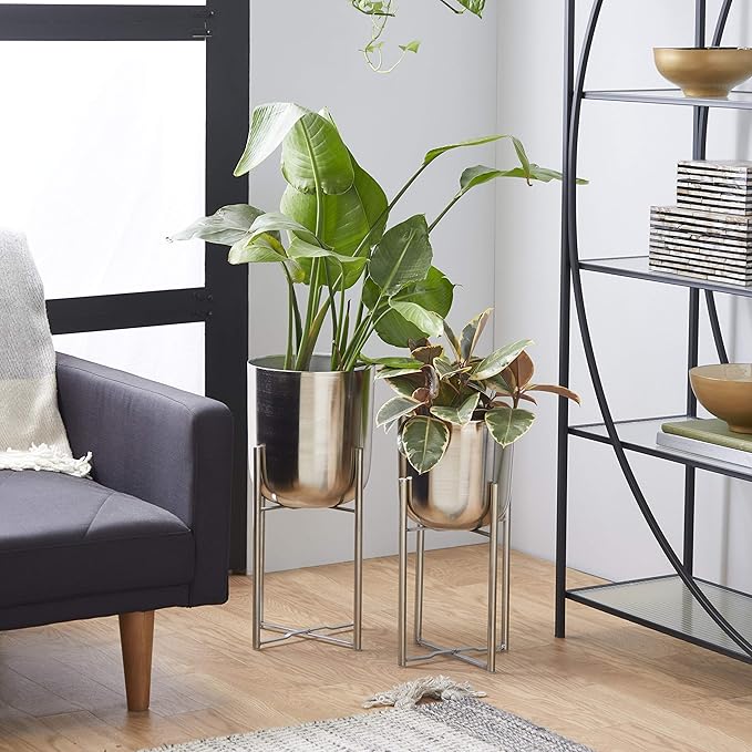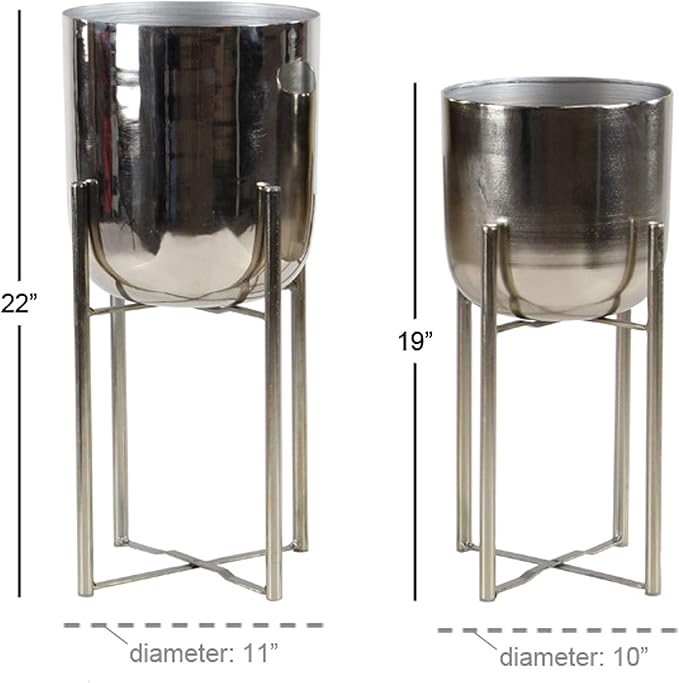 - The shiny silver planters come with stands with the same finish