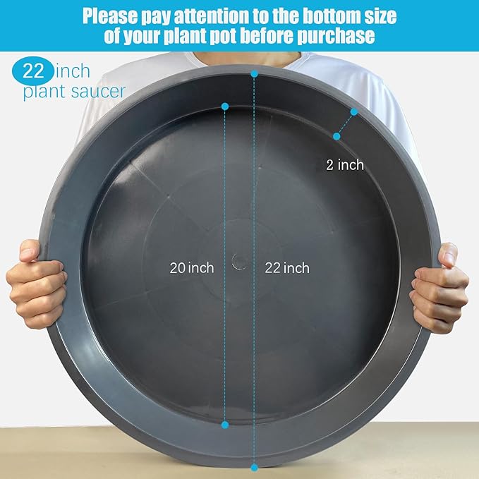 - 【6 Pcs 22 Inch Plant Saucers】The top of this plant tray is 22 inches and the bottom is 20 inches. Please choose the correct pallet size, which will better match your flower pot.
