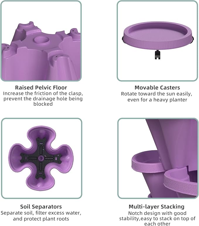 Strawberry Vertical Planter GardenTower, 5 Tiered Stackable Planter with Support Pole, Stacking Herb Vegetable Planters Indoor and Outdoor - Purple