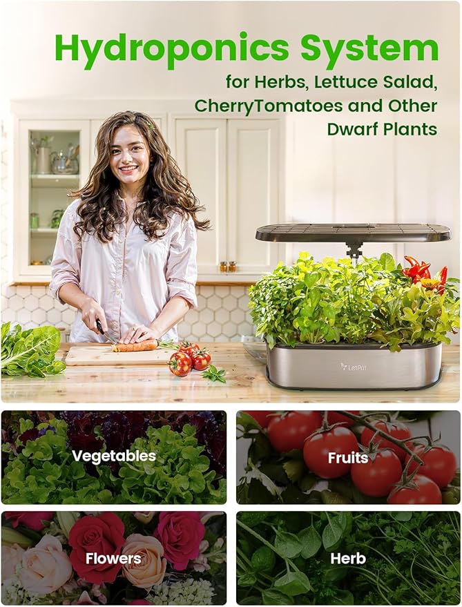 - QUALITY AND SERVICE FIRST: Our hydroponic growing system is crafted with quality and durability in mind. Featuring a stainless steel surface and a double-layer design with an inner wall made from top-level resin and an outer wall made from stainless steel, it's both easy to clean and maintain. Plus, all LetPot products come with a lifetime of service and continuous remote hardware and app upgrades via Wi-Fi, ensuring you always have access to the latest features and support.