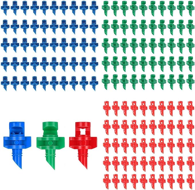 - 【Package Includes】:50pcs of 90 degree misting nozzle(blue),50pcs of 180 degree misting nozzle(green),50pcs of 360 degree misting nozzle(red).Enough quantity to meet your daily use and replacement.