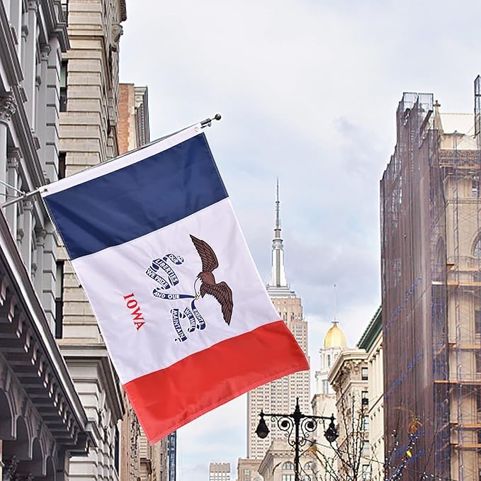 - Strong, Durable: 4x6 IOWA flag outdoor heavy duty, Four Point Needle Fly Hem (4 rows of stitching), 2 Brass Grommets. Fly your big IOWA Flags for outside 4x6 proudly in the rain, snow, high winds and sunshine! The perfect all weathers, Indestructible American IA State Flags for outside banners