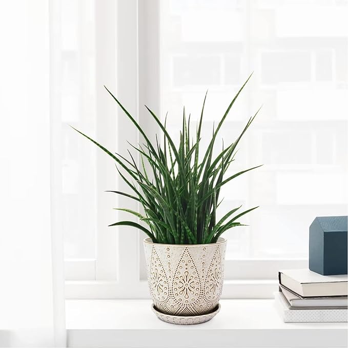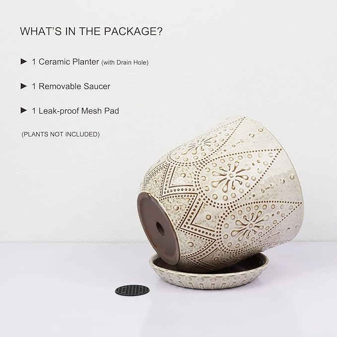 - Size & Package: 8.0 Inch Pot . Package: contains 1 ceramic flower pots, 1pcs mesh pads and 1pcs saucers(NOT INCLUDE PLANTS)