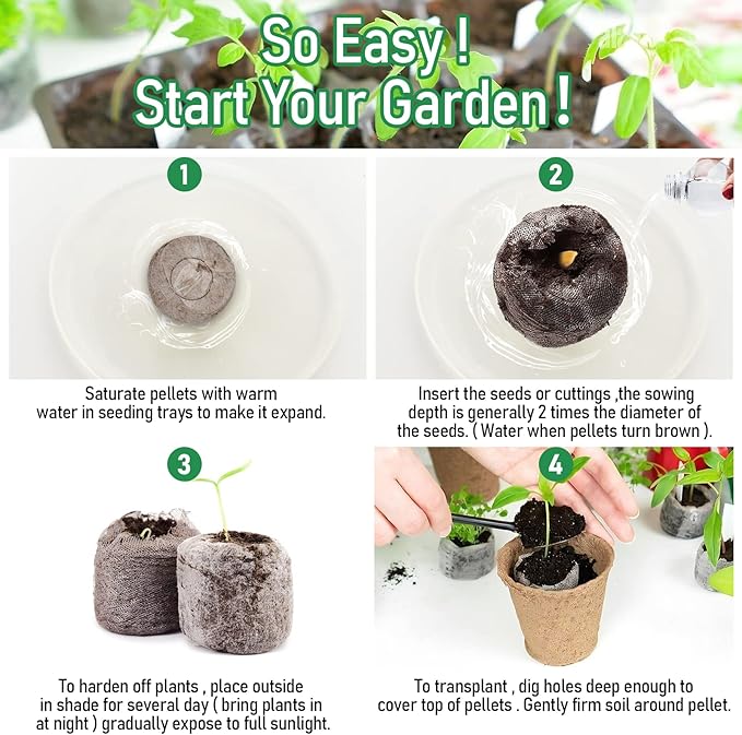 - Wide Application: Seeds starter pellets are great for starting your veggies, garden plants indoors or outdoors, such as tomatoes, peppers, evening primrose, making your seedling work easier and lower cost; You can also plant it with your kids, especially for gardening and growing enthusiasts