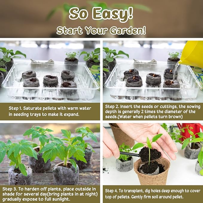 - Wide Application: Seeds starter pellets are great for starting your veggies, garden plants indoors or outdoors, such as tomatoes, peppers, evening primrose, making your seedling work easier and lower cost; You can also plant it with your kids, especially for gardening and growing enthusiasts