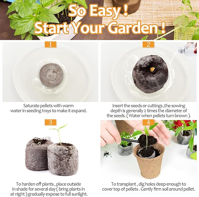 - Wide Application: Seeds starter pellets are great for starting your veggies, garden plants indoors or outdoors, such as tomatoes, peppers, evening primrose, making your seedling work easier and lower cost; You can also plant it with your kids, especially for gardening and growing enthusiasts