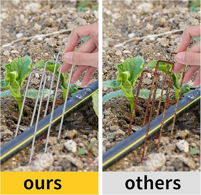 - Package contains: 300pcs 6 inches galvanized rust-proof u-shaped garden stakes in a Firm and sturdy box.