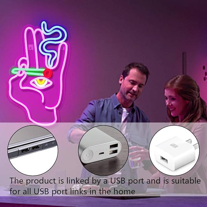 - High Quality Neon Sign: Hand eye neon light signs are made of silicone tube+led neon strips +acrylic back plate. Led neon signs is bright, noise free and energy-saving,5V low voltage, long life, no risk of too hot or glass damage.