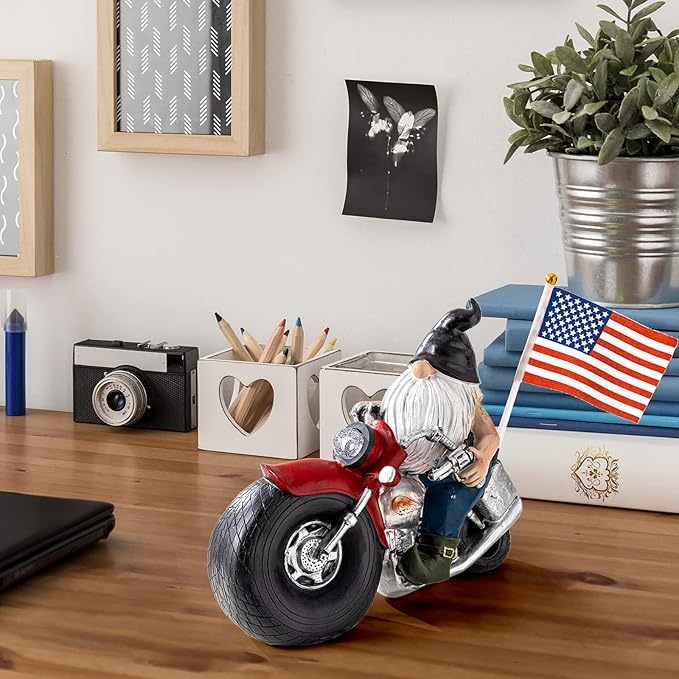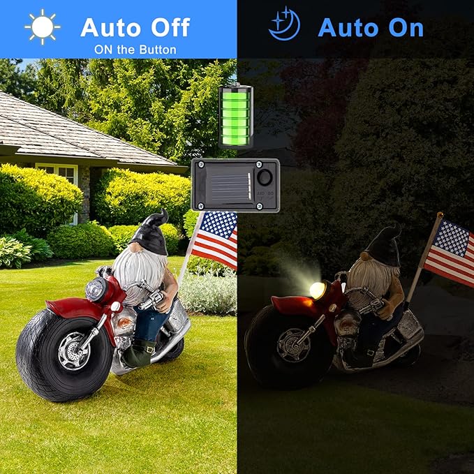 Solar Garden Gnomes Statues,Garden Sculptures & Statues,Motorcycle Gnome Garden Statues Outdoor Clearance with Lights,Resin Garden Decor for Outside Patio Lawn Garden Gift