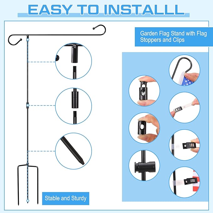 - Widely Applicable: these flag pole can meet the requirements of your big yard, garden, or your lawn or anywhere, add more fun to your garden, yard decoration, farmhouse or outdoor decoration; You can also give it to friends as a housewarming or holiday gift; Nothing says welcome like a garden flag on garden flag stand