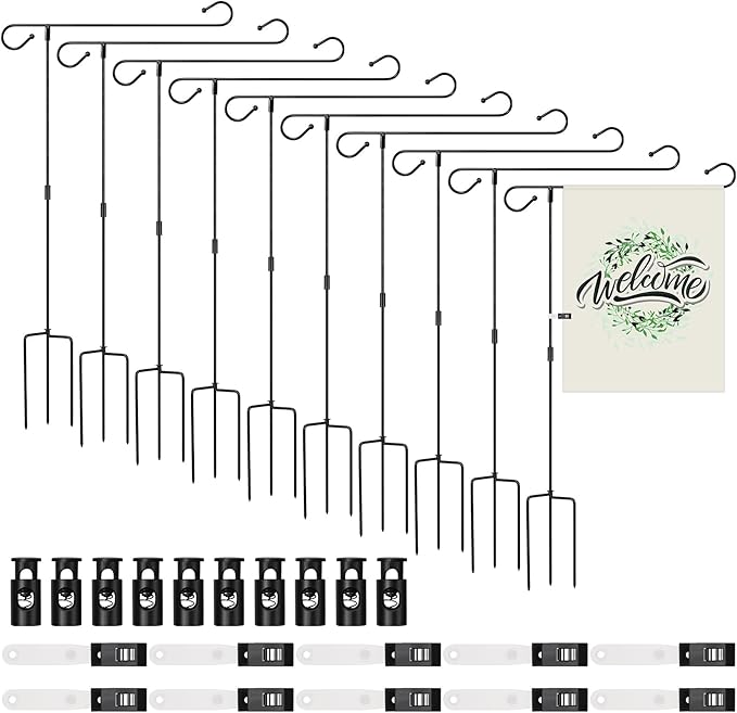- Package Include: you will receive 10 pieces of 3-piece folding garden flag stand, 10 pieces tiger clips, 10 pieces spring stoppers, abundant quantity to meet your needs; The flag holder features the black color finish, which is pretty and elegant, designed for garden flag
