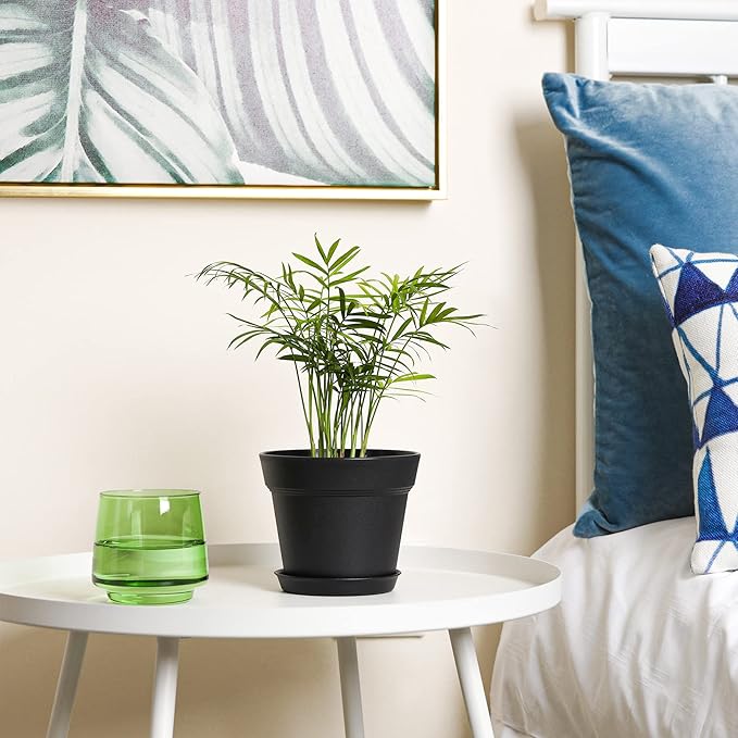 T4U 5 Inch Plastic Planters 18-Pack - Small Plant Pot with Drainage Hole and Saucer, Decorative Nursery Pot Bulk for African Violet, Snake Plant, Aloe and All House Plants Indoor (Black)