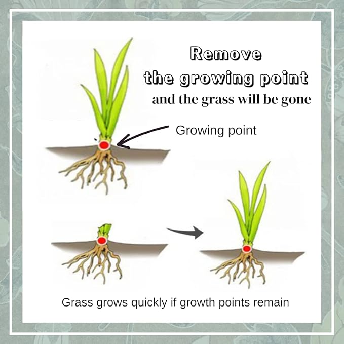 - Nejirigama is a Japanese weeding tool that scrapes away the grass roots with a thin layer of soil. You do not need to take all the roots. If you remove the growing point of the root, the root will be gone. Growth points are tissues in the stem and roots. The growing point of grasses is low and in contact with the ground. On the other hand, the growth points of other broadleaf weeds that occur in brushy areas are higher.