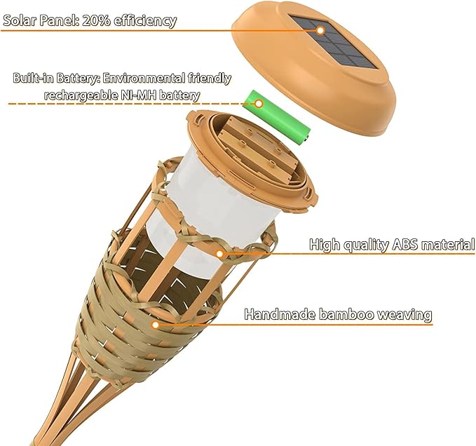 - Innovation of Handmade Bamboo Weaving: Evelynsun solar torches combined lighting with decorative arrangements of simulated flame and handmade bamboo weaving
