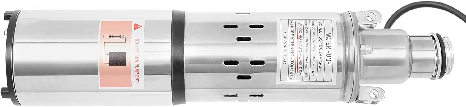 Deep Well Submersible Pump DC 24V 200W Electric Solar Powered Water Pump, 5.3 GPM Flow, 98ft Lift, Farm Ranch Irrigation Submersible Bore Hole Deep Well Pump