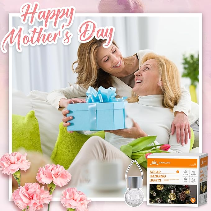 GIGALUMI 12 Pack Solar Outdoor Lights, Solar Hanging Lights for Christmas Decoration-Cracked Glass Solar Lights Outdoor Waterproof for Garden, Yard, Fence, Tree(Cold White)