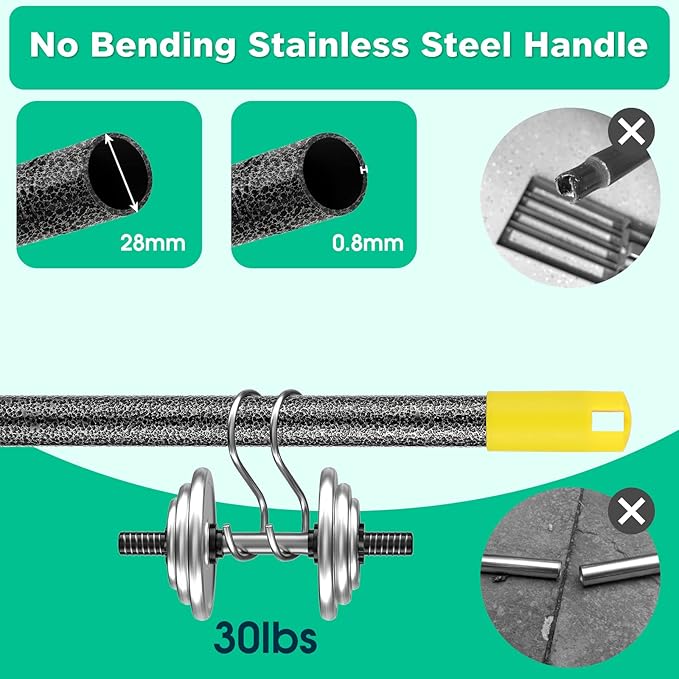 - Heavy Duty Adjustable Handle: Adjust the length of the leveler rake handle from 43 to 70” by adding or taking out extensions. 1 1/8” Rod diameter makes it strong enough for heavy duty garden work without bent or wobble
