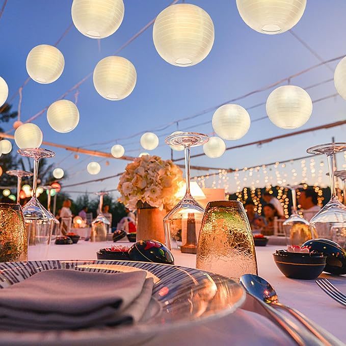 - Perfect Decoration for Any Event: Add decorative Hanging White Lanterns, your family and friends feel more joy and cheerful ambiance of the weddings, birthdays and other celebration. Also perfect for outdoor decoration, like courtyard, summer garden party and other white theme party.