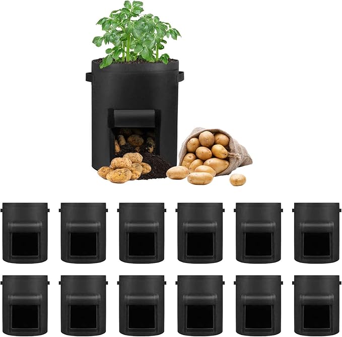 12 Pack 10 Gallon Potato Grow Bags, Heavy Duty Nonwoven Fabric Garden Planting Bag Plant Container with Flap and Handles, Aeration Fabric Pots for Growing Vegetable, Fruits and Flowers