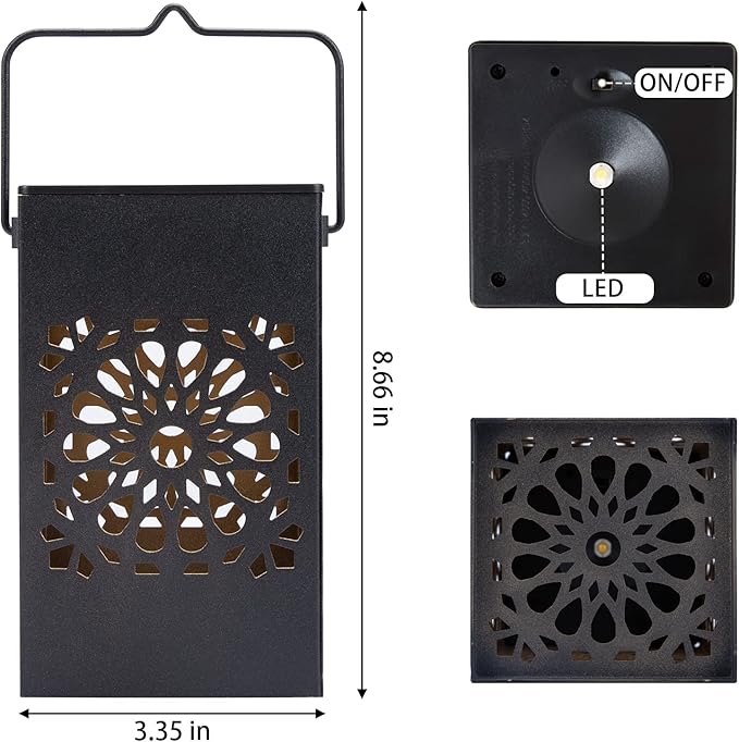 - 🌞Hanging Outdoor Solar Lights: These solar outdoor lights are metal antique black design,the inside of the lantern is golden, which can reflect light better,suitable for indoor and outdoor garden decoration.They are a nice size, not too big and not too small. You can brighten up you're table with one or your whole deck with many.