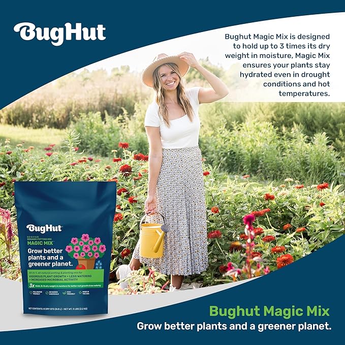 - Moisture Retention: Designed to hold up to 3 times its dry weight in moisture, Magic Mix ensures your plants stay hydrated even in drought conditions and hot temperatures. This moisture-retaining soil improves root development and overall plant health, making it ideal for potted plants and garden beds.