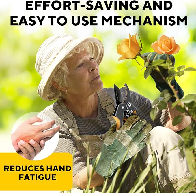 - RATCHETING PRUNING SHEARS FOR GARDENING HEAVY DUTY - Ultra-Sharp & Durable blade. High carbon SK-5 steel with Ultra-fine Polishing Technology & Special Corrosion-Resistant Coating ensure clean, precise cuts for your flower gardens, roses, and plants, making it a perfect choice for gardening enthusiasts.
