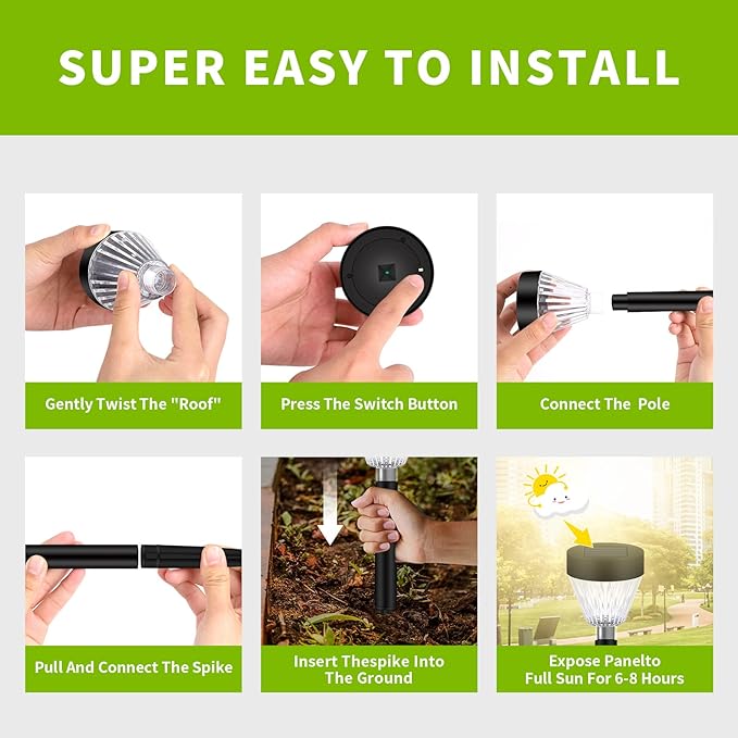 - Durable and IP65 Waterproof: These solar pathway lights are made with high-quality materials that are designed to withstand the elements, such as UV-resistant plastic or waterproof