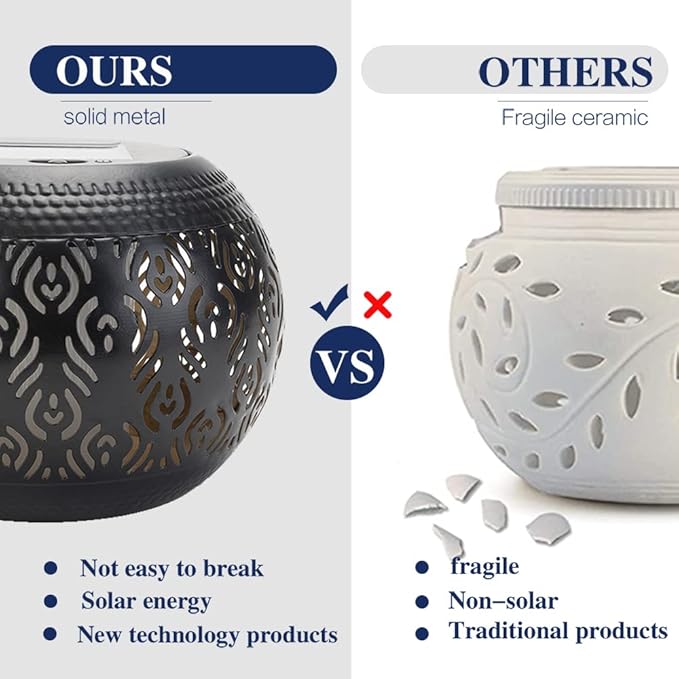 - SPECIAL DESIGN: The solar table light has a unique classical appearance. Special dancing flame Design, which looks like the real flame.The warm yellow light creates a welcoming ambiance. This flickering flame effect will be the best choice for an alternative candle.