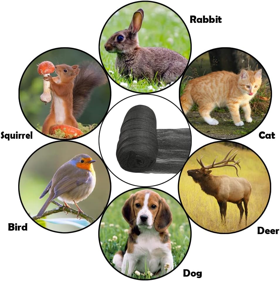 - Protection: Garden bird netting not only protects your plants from birds of all sizes, but can also be used as garden fence animal barrier to prevent small animals such as deer, rabbits, squirrels, cats, and dogs from damaging your harvest.