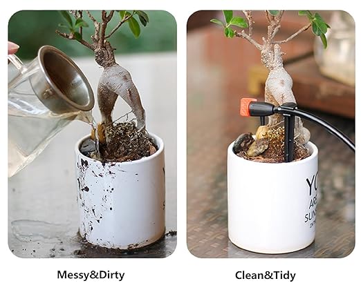 - Adjustable Water Flow: The automatic drip irrigation emitters make sure your plant receive watering according to its needs.(Rotate clockwise to decrease,counterclockwise to increase) Suitable for potted plants irrigation system
