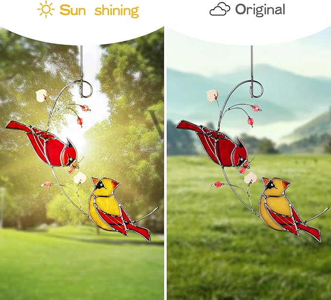 - ✅【Stained Glass Cardinal Decor】- Handmade Cardinal Suncatcher for windows hanging well made high-quality stained glass, durable and sun catchers not easy to corrode. There's been no fading from the hot summer sun! Cardinal suncatcher does look pretty from a distsnce with the sun shining through it, making the whole window look colorful, whether hanging on the window or the wall, are a good choice for home decoration.