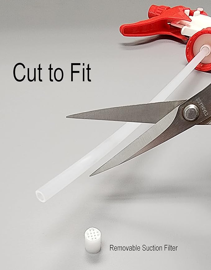 - MULTIPLE USES: This trigger spray head designed to fit most standard size 16 oz/32oz spray bottles with 28-400 neck size. The 9.5" tube length reaches the bottom of your spray bottle extending the time between refills and saving you valuable time. The dip tube includes suction filter to prevent large particles from clogging the nozzle. Suggested applications include restroom cleaning, housekeeping, window cleaning, car washes, auto detailing, lawn care.