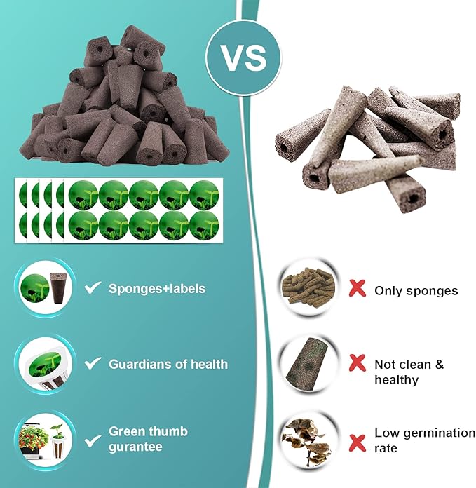 - 【Easy to Grow】Premium compressed peat grow sponges with 50 pod labels which always best to block as much light as possible from reaching the pod medium and effectively prevent harmful substance, say goodbye to annoying messy and cleaning