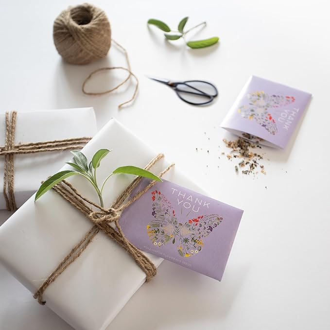 Bentley Seed Co. Thank You Packet - Butterfly Pollinator Mix - 25 Seed Packets - Perfect Eco-Friendly Thank You Gift - Non GMO Seeds, Purple