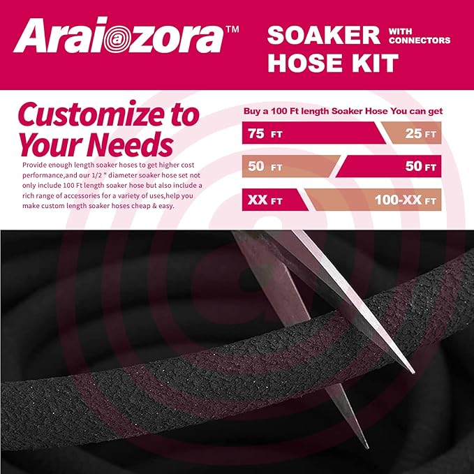 Soaker Hose 100 FT For Garden Beds,Heavy Duty Solid Brass Connector 1/2“ Ruber Drip Irrigation Kit with Hose Stakes&Connector Set for Flower Bed&Yard,Landscaping