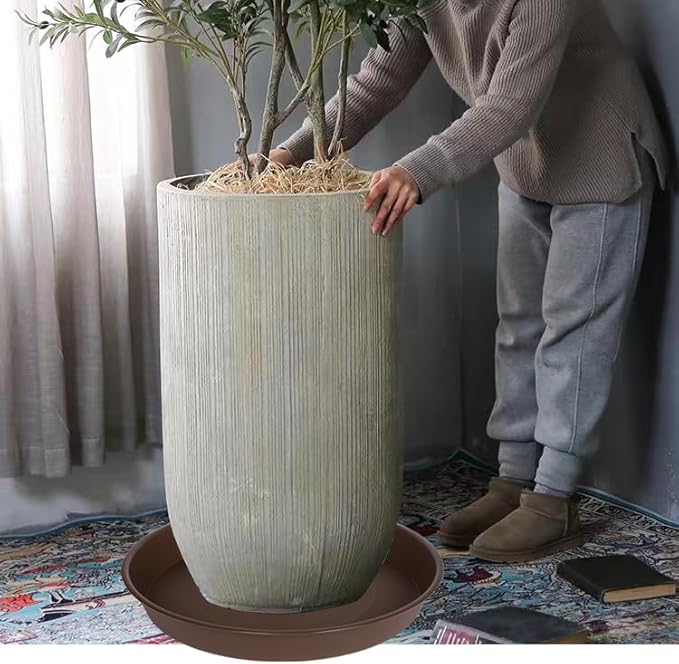 - 【PlANT SAUCER USE】These 25 26 inch plant saucers catches water overflow from flower pots and keeps your furniture and stains free. No fear of leakage from flower pots. Dark brown appearance will not affect any color matching with planters.