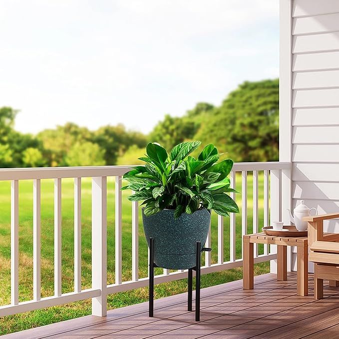 12 inch Large Self Watering Pots, Plastic Planters with 60oZ Removable Deep Reservoir and Multi Mesh Drainage Holes for Indoor Outdoor Garden Plants and Flowers, Black with Green Speckles