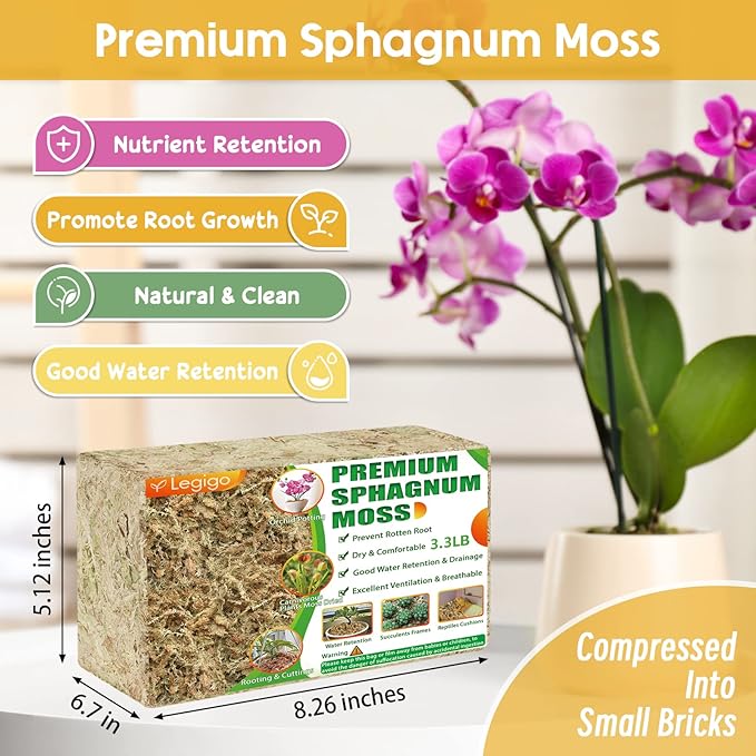 Legigo 3.3LBS Premium Sphagnum Moss for Plants- 60QT Natural Succulent Carnivorous Plant Moss Dried, Long Fiber Orchid Moss for Orchid Repotting Succulent Sarracenia Potted Plants Gardening & Reptiles