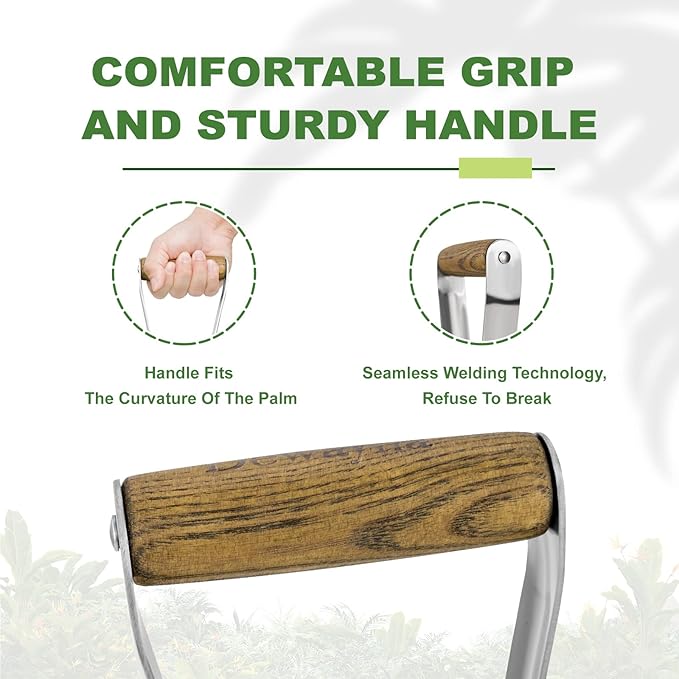 - 【Comfortable Grip Wooden Handle】The handle of garden tool bulb planter is designed in an ergonomic streamline, which fits the natural shape of the hand when holding and using, which helps to provide comfort and good posture when kneeling to plant small bulbs, making the gardening process more comfortable and labor-saving.