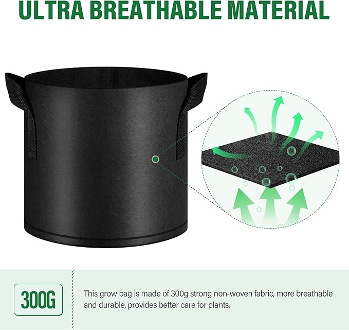 - 【Easy to Transport】Wide polypropylene ribbon handle,No worries moving them around.Durable grow bags with sturdy handle straps allows easily and safely moving.